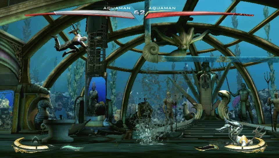 ![]() Plate-forme : PlayStation Vita - Xbox 360 - PlayStation 3 - PlayStation 4 Date de sortie : 29 Novembre 2013 Editeur : Développeur : Genre : Combat Multijoueur : Oui Jouable via Internet : Oui Test par Nic0078/10 Injustice accueille une édition Ultimate et débarque sur Vita. Un air de Mortal Kombat.Responsable du brillant retour en 2011 de la série Mortal Kombat, le studio NetherRealm nous propose un nouveau jeu de combat cette fois dans l'univers des DC Comics, Injustice : Les Dieux Sont Parmi Nous. Un air de déjà vu peut être ? Certains se sont souviendront en effet du titre Mortal Kombat vs DC Universe, un épisode paru en 2008 qui avait quelque peu dénaturé la formule originale, et qui se montrait forcément fortement censuré pour éviter de voir les célèbres icônes américaines trop mal traitées. Mais dans Injustice, tout est différent. L'histoire évolue entre deux mondes parallèles suivant la destruction de la ville de Metropolis, alors que Superman assiste à la disparition de sa femme enceinte de son enfant. Avide vengeance, Superman prône un nouvel ordre mondial basé sur la répression, dont il sera le nouveau leader. Mais Batman ne l'entend pas ainsi, et les super-héros vont dès lors se scinder en deux groupes. Ceux qui accompagneront la croisade de Superman, et les autres plus mesurés. Un scénario qui permettra de justifier les combats entre super-héros mais aussi vilains habituels, le casting réunissant tout de même une trentaine de personnages, dont certains rarement vus dans les jeux vidéos. L'édition Ultimate apporte de nouvelles légendes de l'univers DC Comics, avec Lobo, Batgirl, le Général Zod, Martian Manhunter et Zatanna, mais aussi Scorpion, un personnage de la franchise Mortal Kombat retravaillé par Jim Lee, coéditeur chez DC Entertainment. Sur Vita, on trouve également quelques QTE utilisant l'écran tactile de la console, mais rien de bien passionnant. S'appuyant sur une version modifiée du moteur de Mortal Kombat, Injustice conserve donc des bases proches de son ainé, mais en beaucoup moins violent cela étant et les costumes des protagonistes ne se détériorent jamais. La progression est agrémentée de cinématiques très réussies, et le jeu est intégralement doublé en français (le résultat est beaucoup plus sérieux que dans MK) sauf sur PlayStation Vita (manque de place sur la cartouche ?). Le mode Histoire comporte une dizaine de combats en deux rounds et une vingtaine de personnages jouables, et comme l'intrigue évolue dans une dimension parallèle, on compte ainsi beaucoup de protagonistes en double. Naturellement, un mode deux joueurs est également présent, en local comme en ligne. Par ailleurs, des missions annexes sont proposés, les S.T.A.R, des défis basés sur la dextérité et la rapidité au combat, et cette version Ultimate permet d'accéder dès le début à tout le contenu qui était jusqu'à présent uniquement disponible en téléchargement. Et si vous vous sentez perdu, une liste de coups sera accessible en mettant la pause. Cependant, les combats restent assez proche des précédents opus, avec toutefois un environnement plus exploité que dans la passé. Techniquement séduisant ?Injustice tourne sur l'Unreal Engine 3 et propose un résultat globalement satisfaisant sur le plan graphique, respectueux des différentes séries de comics en tout cas, mais très nettement en deça du jeu sur consoles de salon. C'était déjà le cas de Mortal Kombat en son temps, et les textures de cette version Vita s'avèrent beaucoup moins détaillées, tandis que les cinématiques restent assez ternes. Les animations sont plutôt fluides, même si quelques raideurs subsistent par moment. Les Fatalités de Mortal Kombat, des coups spéciaux déclenchant une mise à mort spectaculaire, ont bien sur disparu, et les combats sont encore plus arcades que dans ce dernier. Si différentes configurations sont proposées, le jeu offre un panel de commandes assez riches. En d'autres termes, il faut parfois appuyer comme un malade sur la manette pour déclencher certains combos. On s'y fait avec le temps, mais au début on matraquera la manette et on essayera tous les boutons afin de pouvoir lancer un coup spécial. Notons que chaque combattant dispose d'un coup spécial qui s'utilise quelque peu comme le X-Ray de MK, à savoir une fonctionnalité permettant de concentrer son énergie, et une variable utile pour inverser le cour d'un match. En lançant un coup au moment opportun, la situation bascule à votre avantage et promet une bataille pour le moins intense. Certes, tout n'est pas encore parfait, mais Injustice se montre extrêmement convivial et accessible, et se positionne comme un des meilleurs jeux de combats actuels. VERDICT-Injustice est un jeu de combat bien réalisé (quoique un peu moins sur Vita que sur consoles de salon), très dynamique, et presque aussi amusant qu'un Mortal Kombat (mais nettement moins drôle). Les fans des comics seront ravis de retrouver un casting haut en couleurs dans une production hautement spectaculaire mais qui n'oublie pas de rester accessible. Cette édition Ultimate regroupe tout le contenu disponible jusqu'à présent en DLC. |