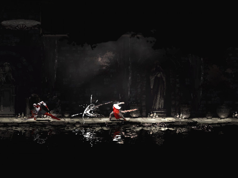 Il est des genres qui transcendent les barrières du temps et s'imposent comme un élément indispensable du paysage vidéoludique : les metroidvanias en font certainement partie. Moonscars, plus précisément, surpasse tout cela et repousse les limites du soulslike, mélangeant les deux styles avec une recette simple et brutale à notre avis. Si les graphismes en pixel art vous font penser que vous êtes devant un jeu "à l'ancienne" et que vous devez donc baisser votre garde, vous n'avez jamais été aussi loin de la vérité. Icore : la véritable source de vie et l'essence de tous les êtres vivants. Le monde en est en effet imprégné et c'est là que notre protagoniste se réveille, enveloppé d'une faim insatiable pour cet élément particulier. Notre héros ne se souvient de rien de son passé, si ce n'est de son nom, Irma la grise, qui lui vient en écoutant parler un vieil homme, qui se fait appeler le Sculpteur et prétend être le créateur des Clayborn, ces golems de chair et d'os dans lesquels l'homme déverse des âmes. Les Clayborn sont l'armée du Sculpteur lui-même, qui a décidé de construire cette force armée pour l'envoyer contre les ténèbres qui s'emparent du monde. Au cours de son voyage, Irma la grise rencontrera non seulement des ennemis, mais aussi des alliés dans sa chasse au mal, même si le but réel de l'âme perdue qui incarne les différents corps est d'échapper à la simple faim de l'Icore et de retrouver une vie normale. Le contexte narratif, bien que prétextuel au départ, évolue de pair avec le gameplay. C'est très intéressant, car nous ne sommes pas confrontés à l'habituel soulslike façon metroidvenia où l'histoire est écrite à l'envers et où il manque des pages d'un livre retourné, mais linéairement et sereinement nous découvrons des backstories et des rebondissements dans la peau d'un protagoniste qui augmente lentement son charisme.