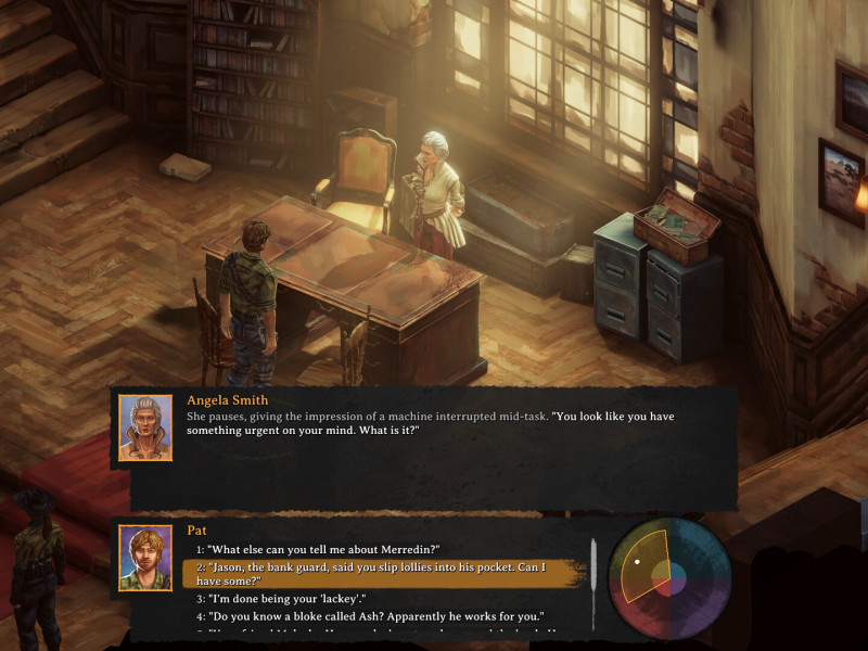 Le biome australien, son écosystème et sa culture ont été les éléments clés dans mon choix de recevoir ce jeu pour analyse. Cependant, la densité d'informations n'a pas été le facteur de divertissement que j'espérais, entraînant plusieurs moments de lassitude importants. En analysant le titre bien à l'avance, avant sa sortie, nous avons constaté quelques problèmes au niveau de l'audio ou des animations douteuses, ainsi que de possibles erreurs de script et autres bizarreries qui seront probablement résolues après la sortie du jeu. La langue française a été rajouté il y a peu et il faut souligner l'importance d'une localisation complète car, dans le cas de Broken Roads et de sa narration complexe, il est extrêmement nécessaire d'attirer l'attention du public. Une implémentation adoptée, telle que diriger les personnages en cliquant sur l'écran, fonctionne toujours mieux sur ses versions PC et non sur les consoles. Ce n'est pas le meilleur représentant du genre mais on finit par s'y faire. Malgré le système de mouvement, les personnages répondent bien aux commandes et la vue isométrique rapprochée permet d'obtenir des détails d'animation et une esthétique uniques. Le concept artistique utilisé dans Broken Roads donne l'impression d'un dessin à la main et d'une esthétique rétro, impliquant un climat aride et sauvage que l'on trouve en Australie. La rugosité est présente, faisant ressortir les éléments de la scène parmi les directions artistiques perceptibles qui ont été prises, évitant le réalisme et adoptant une esthétique audacieuse dans son art conceptuel, expérimentant en même temps avec les personnages, les animations et tout ce qui compose le monde proposé. L'expérience globale et la sensation de voyager à travers l'Australie sont incroyables. Il s'agit d'une expérience stimulante pour les nouveaux venus aux RPG plus classiques, en particulier ceux qui sont avides de combats. Malheureusement, le titre n'a pas tout à fait répondu à nos attentes ; cependant, il faut souligner qu'il a eu le mérite de proposer un système de boussole morale que nous n'avions jamais expérimenté auparavant, ainsi qu'une expérience qui échappe à la norme européenne ou américaine, ce qui a ajouté de la fraîcheur à l'aventure.