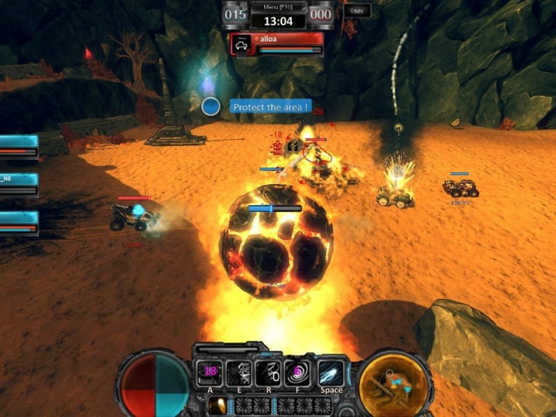 La nouvelle branche de l'éditeur Mindscape nous propose de participer à un jeu de course en ligne évoluant dans des arènes, à bord de véhicules de combat cela va de soi. Crasher met donc en scène deux équipes face-à-face, dans deux modes de jeux différents. On retrouve une sorte de conquête et défense de zone, et un combat à mort tout ce qu'il y a de plus classique. Le hic, c'est que peu de cartes sont disponibles (trois pour le deathmatch, une seule pour la conquête), malgré la présence d'une quinzaine de voitures (répartis en six classes). Manette ou clavier en main, on s'aperçoit rapidement que le gameplay ne suit pas du tout.