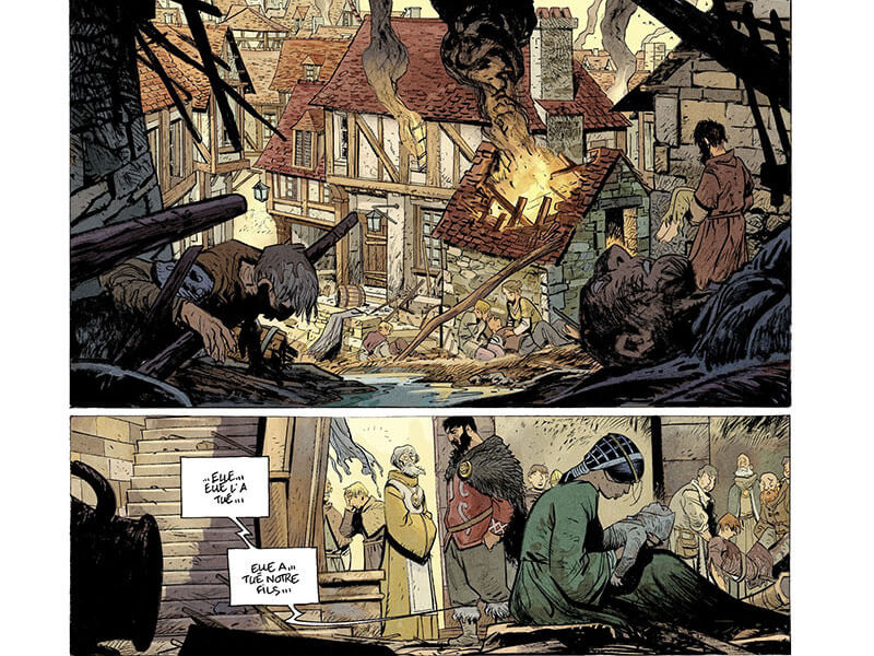 Hubert, que nous avez vous laissé là encore une fois ? Quel don que celui de jouer avec les codes des contes, de la fantasy et des sentiments, aussi sombres soient-ils tous ? Quelle jolie métaphore sur la difficulté de se défaire de l'héritage parental, quelle est donc notre part de libre-arbitre quand nous reproduisons ce que nous ont transmis ceux qui nous ont élevés. Ces deux êtres ont commis une erreur, dans quelle mesure cela doit-il les poursuivre toute leur existence ? Avec brio, comme c'était à son habitude, le regretté Hubert nous emmène au cœur d'un conte fantastico-médiéval sombre et violent qui comporte son lot de chevaliers, d'honneur, de mythe (Mélusine traine indubitablement dans les parages), d'amour et de mort. Lorsqu'il est temps d'assumer qui on est, ce qu'on ressent, et nos erreurs comme nos forces, c'est là que Vincent Mallie intervient aussi ! Le dessin est encore et toujours somptueux, en mouvement, en émotions. Nous sommes absolument fans de ce trait fin si poétique et si vivant, ou l'ombre et la poussière se battent avec le fer et le sang quand la lumière et l'amour ne sont pas en reste. Une fois que tous se sont rejoints, et qu'il faut finalement en finir, il reste le goût des larmes. Parce qu'au final, l'Amour est peut-être le seul sentiment qui se fraiera toujours un chemin vers la lumière, quitte à tout dévaster sur son passage.