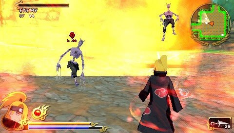Si vous n'êtes pas connaisseur du manga Naruto, sachez que le personnage principal a scellé en lui un démon lors de son enfance, et que depuis sa vie a pour le moins changé. Le reste est à découvrir en manga ou dans le dessin animé programmé sur France 3. Ce troisième Naruto à sortir en Europe sur PSP propose donc de revivre les combats contre les membres de l'Aktsuki, mâtinés de passage inédit pour remplir le disque. Le mode scénario apparaît d'ailleurs assez déséquilibré, avec beaucoup de hauts et bas, l'intérêt des objectifs se montrant pour le moins variable (constat similaire dans le mode Missions, même s'il est possible d'incarner les méchants). Comme son titre l'indique, Akatuski Rising n'est pas un Ultimate Ninja Heroes, et propose donc un gameplay sensiblement différent, évoquant davantage les épisodes Uzumaki Chronicles sortis sur PS2. Dans un environnement 3D plus ou moins ouvert, vous progresserez de zone en zone (à l'instar de Phantasy Star Portable).