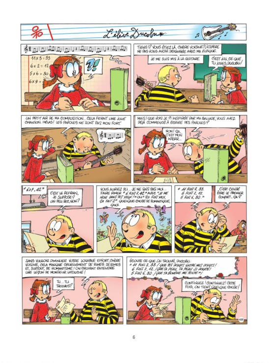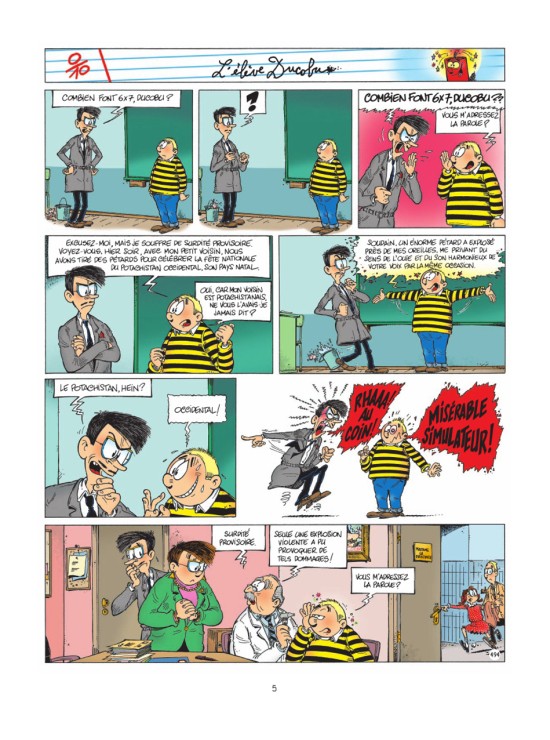 ![]() Plate-forme : Bande Dessinée Date de sortie : 05 Juin 2009 Editeur : Développeur : Genre : Bande dessinée Multijoueur : Non Jouable via Internet : Non Test par Nic0078/10 Scénario : Zidrou Ce tome 15, lancé plus tôt dans l'année qu'à l'accoutumée, a pour thème les grandes vacances. Deux longs mois durant lesquels les Latouche de tout poil n’auront aucune prise sur l’emploi du temps des Ducobu de la planète. Mais d'ici là, il faudra encore trouver combien font 6 x 7. Le reste de l'histoire n'a pas fondamentalement changé : Ducobu essaye toujours via divers stratagèmes de copier les réponses de sa chère voisine, et lit ses bandes dessinées pendant que le prof réalise une énième dictée sur les hyménomycètes et autres hypholomes. Quel ne sera cependant pas sa déception d'apprendre que la boutique spéciale pour les cancres s'est reconverti en magasin anti-triche à cause de la crise économique ! VERDICT-Un cru annuel très réussi de l'élève Ducobu. Les gags passent et ne se ressemblent pas. |