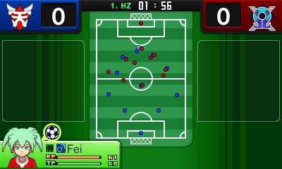Une fois le coup d'envoi donné, tout peut arriver. Deux types de rencontres s'offrent à vous. D'une part, des matchs à 11 contre 11, qui se jouent sur un terrain classique. D'autre part, des rencontres à 5 contre 5 lors desquelles le joueur est noté sur des aspects précis comme le score ou encore la possession de balle. Tout au long du match, votre stylet se montrera décisif pour vous permettre de diriger votre équipe. Votre dextérité et votre capacité de réaction seront sollicitées à l'heure de déterminer la stratégie de votre équipe : exercer un pressing, intercepter les passes, tacler en glissant ou encore inscrire des buts. Pour inverser le cours du jeu, vous pourrez recourir à de multiples mouvements fantaisistes, des Techniques spéciales, mais aussi faire parler les nouveaux Esprits guerriers "armorifiés", qui permettent d'améliorer temporairement ses statistiques, ou encore utiliser la fonction Minimax, qui offre la possibilité de mélanger les Auras des joueurs pour augmenter leurs capacités. Parfois, des membres de l'équipe perdante vous proposeront de vous joindre à eux, mais vous disposerez également de la possibilité d'aller acquérir des cartes joueurs chez les spécialistes