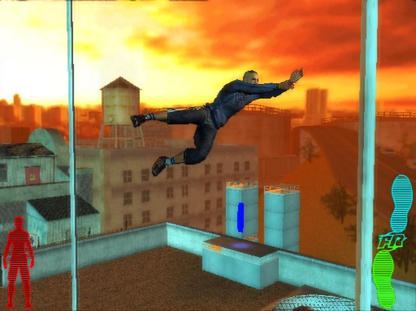 Editeur : Développeur : Genre : Action Multijoueur : Oui Jouable via Internet : Non Test par Nic0075.5/10 Free Running fait son arrivée sur PS2. Et je cours ...Courir, sauter, tomber et se relever : Grâce à Free Running, c’est à vous de jouer et de vous initier au Parkour , ce sport de rue freestyle qui est en train de conquérir le monde. « Parkour » signifie littéralement ‘l’art du déplacement’. Dans la pratique, il s’agit davantage d’un mode de vie où le franchissement d’obstacles occupe une position centrale. Dans une ville moderne, se rendre rapidement du point A au point B relève du défi. Des embouteillages sans fin, un trottoir surpeuplé, sans oublier les feux de circulation chaotiques qui vous empêchent d’avancer ou de reculer. Dans Free Running, Sébastien Foucan, expert incontesté du Parkour, vous apprend son art en personne:. Ce maître du free running a fait preuve de son savoir-faire dans les documentaires ‘Jump London’ et ‘Jump Britain’. La solution est donc proche. Un peu d’endurance, une bonne dose de créativité et des membres flexibles sont nécessaires afin de courir, sauter, rouler et tomber dans la ville. Escaladez des centres commerciaux, courez sur les toits des usines, bravez les abribus, sautez d’un immeuble à un autre, etc. Plus vous aurez du style, mieux ce sera. YamakasiPlus de soixante défis différents, répartis sur dix niveaux de jeu, vous attendent dans Free Running. Les niveaux sont partagés en trois zones distinctes qui ont chacune leur propre ‘look & feel’. Assez ouvert, le jeu vous autorise à choisir vous-même votre chemin dans la ville. Plus vous faites preuve de créativité, mieux c’est pour les points et bonus. Mais concrètement, sauter à droite et à gauche sur tous les éléments du décor, pourra paraitre vite lassant. Qui plus est, le jeu ne dispose pas d'une réalisation très performante, avec un rendu graphique léger pour de la PS2 et des conditions climatiques aux résultats étonnants. Ajoutons de cela que les environnements graphiques manquent cruellement de vie, que la caméra n'en fait parfois qu'à sa tete, et que la jouabilité n'est pas toujours très précise. VERDICT- Malgré un concept inédit sur consoles, Free Running peine à maintenir son intéret, faute d'une jouabilité plus intuitive. |