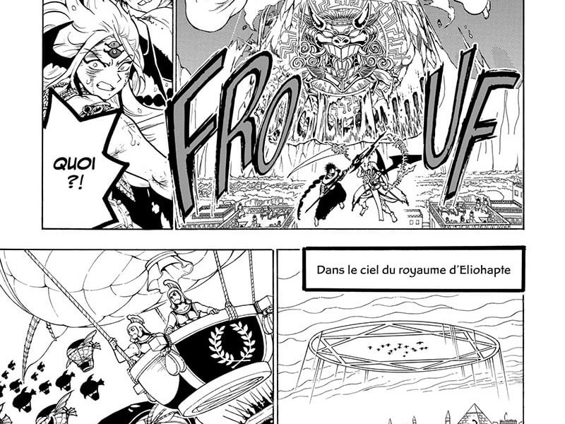 Alors que le monde entier va vers l'extinction en raison du sortilège qui le ramènera à l'état de Rokh, Aladin et Ali Baba, de retour sur Terre, font tout leur possible pour s'opposer à ce destin, tandis que dans le Palais Sacré, la lutte acharnée entre David et Sindbad se poursuit. Entre désespoir et espoir, l'histoire touche à sa fin et l'avenir qui attend nos amis dépasse toute imagination. Seule une puissance au-delà de la magie maximale peut décider de cette bataille pour le destin ultime du monde ! Et ainsi, Magi touche à sa fin. Il y avait des choses que l'on appréciait vraiment, comme la façon dont Ohtaka-sensei a montré comment la détermination sans faille d'Ali Baba à combattre le sort rappelait à diverses personnes soumises au lavage de cerveau d'autres héros qu'ils avaient connus qui avaient tout sacrifié pour des objectifs et des pays qui n'existeraient plus si tout le monde et tout est retourné à Rukh. Ou bien encore la façon dont Kogyoku essayait désespérément de le faire se rendre à elle avant l'arrivée de l'armée massive pour tenter de lui sauver la vie. Le reste, cependant, n'est pas tout à fait clair. Nous comprenons la plupart de ce que Sindbad a fait, mais pas vraiment comment Aladin est sorti victorieux. Il y a eu un gros flash de lumière et puis… un heureux épilogue ? La série a commencé par un casting amusant de trois protagonistes principaux mais finit avec seulement deux d'entre eux qui sauvent la situation, malgré une tentative symbolique de faire faire quelque chose à Morgiane. Il fallait qu'elle soit dans la bataille finale. Mais Aladin se fait aussi un peu avoir, car à la fin, c'est le voyage d'Ali Baba et son histoire, car ce sont ses choix qui s'avèrent porter le jour encore et encore, au point de sauver le monde - un monde qui est certes un peu à l'envers. Et nous terminons par un mariage. Magi s'est un peu attiré par moment et beaucoup de ses meilleurs combats ont été interrompus par des conférences et des platitudes, mais la série va manquer maintenant que c'est fini. Ce qui était semble-t-il logique.