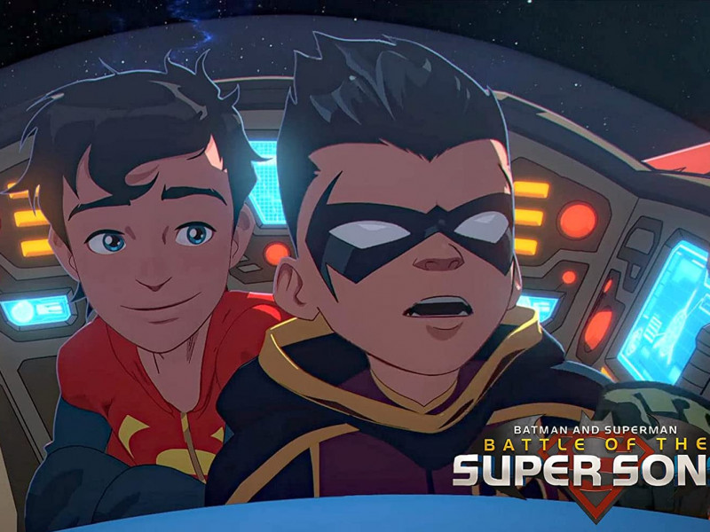 Un signal provenant de la Tour de Guet alarme Batman et Superman. L'Archer Vert (Tom Kenny) a quelque chose d'étrange et convoque tous les membres de la Ligue des Justiciers pour une réunion importante. Jonathan, 11 ans, est confronté aux mêmes problèmes que son père à Smallville. C'est un intello qui se fait brutaliser. Son échec dans l'équipe de baseball renforce son statut d'intello. Damian est un assassin entraîné "qui a tué plus de gens que Jonathan n'en connaîtra probablement jamais". Le petit-fils de Ra's al Ghul n'a pas l'esprit d'équipe. Damian est impétueux et arrogant mais c'est un combattant expérimenté. Il entre en action quand la Ligue des Justiciers est compromise. Jonathan, malgré sa stupidité, a montré des traits kryptoniens sous la contrainte. Les Super Sons doivent prendre la relève de leurs pères en tant que héros. L'animation est superbe. Le film est stylistiquement similaire à What If... ? des Marvel Studios. Les arrière-plans et les personnages en 3D CGI sont mélangés avec un clin d'œil aux dessins animés classiques. L'accent n'est pas mis sur un réalisme extrême, mais tout est net et bien défini. Le montage astucieux du début ajoute juste un soupçon de différence. Les réalisateurs proposent des scènes d'action solides. Le méchant antagoniste et ses sbires effrayants apportent un élément sombre nécessaire. Vous avez déjà vu ce méchant auparavant. Il sera certainement comparé à la version live-action.