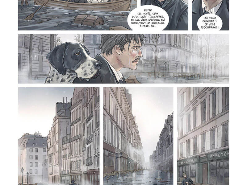 Nous sommes en 1910 dans la plus belle ville du monde : « Elle ne vaut pas la Corse mais cette ville est magique, quand sa lumière ne nous a rien donné, sa nuit arrive pour nous combler » . C’est l’hiver de la grande crue de la Seine dans le Paris des arts et des Lettres et des Expositions universelles pas si éloignées dans le temps. Il s’appelle Ange Leca et vient de Corse, il aime l’absinthe, le whisky et surtout Emma. Ange travaille comme journaliste à Paris. « Mais journaliste, détective… c’est la même chose non ? » C’est une époque particulière que le Paris de la Belle Époque. C’est beau, plein de romantisme et de belles toilettes… mais c’est aussi une période violente et corrompue où la police scientifique n’en est qu’à ses débuts. Lorsque Ange découvre le corps d’une femme démembrée il n’aura de cesse, accompagné de son chien Clémenceau de chercher le coupable.