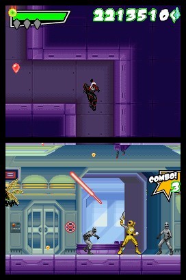![]() Plate-forme : Dual Screen - Playstation 2 - PC Date de sortie : 14 Novembre 2007 Editeur : Développeur : Genre : Action Multijoueur : Oui Jouable via Internet : Non Test par Nic0076.5/10 Les Power Rangers fêtent leur 15 ans. A cette occasion, un nouveau jeu vidéo voit le jour. Power Rangers fait son retour sur consoles, et pour l'occasion change d'éditeur puisque c'est Disney qui a récupéré le projet. Nous sommes donc en l'an 3000 où un fugitif du nom de Gluto vient d'échapper aux Rangers de la Force du Temps et décide de réunir les méchants les plus redoutables de la galaxie, afin d'anéantir les forces du Bien. Seuls les Power Rangers peuvent éradiquer cette menace. Et les Power Rangers rencontrés dans le jeu (16 en tout) viendront des multiples déclinaisons visionnées sur le petit écran dans les diverses missions que contient la cartouche (Force du Temps, Opération Overdrive, Force Animale, L'Autre Galaxie, Force Cyclone, Mighty Morphin, SPD et Temple des Légendes). Super Legends se présente sur Nintendo DS comme un classique jeu d'action 2D, plus exactement un beat'em all. Des ennemis arrivent de toute part, et il faut les éliminer afin de poursuivre sa route. Bonne nouvelle, les commandes répondent très bien et les enchaînements se montrent assez variés. Vous pourrez frapper les adversaires à mains nues, utiliser votre pistolet laser (et même tirer en diagonale), ou bien donner un coup d'épée tout en multipliant les combos bonus. Au fur et à mesure de la progression, vous gagnerez des points qui permettront de débloquer de nouveaux coups. Il est à noter que les deux écrans de la DS sont sollicités pour afficher le jeu, et qu'il faudra surveiller ce qui se passe en haut pour éviter de se prendre un robot sur la tête. Nonobstant, des ralentissements se font parfois sentir quand il y a trop de personnages à l'écran. Si le concept peut sembler rapidement répétitif, et c'est aussi le genre qui veut ça, les développeurs d'Handheld Games ont adjoint des niveaux intermédiaires sous la forme de shoot'em up. Dans la lignée d'Ikaruga, soit du shoot 3D à scrolling vertical, vous contrôlez un vaisseau et devez éliminer les ennemis qui se trouvent sur votre chemin, tout en évitant les tirs et en rammassant les powers ups. Autant le dire, ces niveaux sont particulièrement facile et ne devrait pas poser de problème même au joueur lambda. Et si cela ne suffit pas, on trouve encore d'autres fonctionnalités dans Power Rangers Super Legends. En effet, lors des combats contre les grands robots, vous serez dans le Megazord et le jeu basculera alors en FPS 3D. Mais les déplacements sont limités puisque vous ne pourrez qu'aller à droite ou à gauche, tirer sur votre cible naturellement, et dessiner un motif sur l'écran tactile (un trait pour donner un coup d'épée, un rond pour utiliser le bouclier). La petite subtilité vient de la gestion des tirs puisque si vous faites feu trop souvent, le Megazord pourrait surchauffer. Techniquement parlant, Power Rangers Super Legends se veut assez variable. Les phases d'action sont certes colorés et fidèles au comic, mais font également bien penser à un jeu Super Nintendo. Les passages 3D sont dans la norme DS. Côté jouabilité, aucune difficulté ne se fait sentir, la mécanique est bien huilée. Ce n'est hélas pas le cas de la bande sonore qui n'est pas vraiment un modèle du genre, loin de là. Les bruitages sont assez classiques pour leur part. Aucune voix n'est présente, mais la cartouche propose de multiples dialogues écrits (en Français) et qu'il faut suivre, puisque c'est dans ces fenêtres qu'on vous attribuera de nouvelles compétences. Enfin, la durée de vie est plutôt à la hauteur, avec un mode solo qui se montre assez complet et qui propose de redécouvrir les multiples variations du programme même à deux puisqu'un mode coopération est également de la partie (une cartouche par joueur toutefois). VERDICT-Power Rangers Super Legends est au final un jeu d'action très correct, et loin des précédentes productions en date. Le titre se montre défoulant, et devrait ainsi plaire aux plus jeunes. |