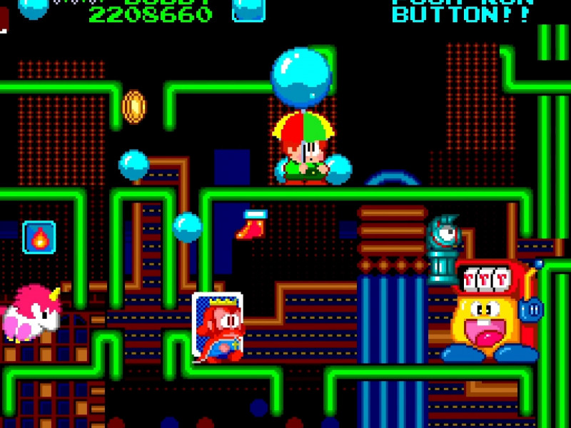 Si vous souhaitez une expérience plus « brute », jouez en mode Arcade, qui ne dispose que d'un grand nombre de suites, mais d'aucune des installations modernes. En mode Standard, le joueur dispose d'un état de sauvegarde et de la possibilité de rembobiner le jeu s'il a fait une grosse erreur ou s'il veut l'accélérer parce qu'il a voulu avancer le temps pour une raison ou une autre. Vous avez battu le jeu en mode arcade et vous voulez encore relever le défi ? Il existe des défis pour un ou deux joueurs. Vous trouvez que c'est trop compliqué, même avec les aides ? Vous pouvez toujours utiliser des tricheurs pour rendre l'expérience encore plus décontractée. Parasol Stars : The Story Of Bubble Bobble III s'adresse à ceux qui apprécient les jeux amusants sans avoir à passer des heures à se plonger dans des constructions ou dans une histoire vieille de plus de dix ans. Jouez seul ou en coopération locale et lancez-vous des défis, car le jeu ne vous prend pas par la main pour vous expliquer quoi que ce soit, comme c'était le cas autrefois. Si ce type de produit vous convient, investissez-y vos pièces d'or. Le relatif bémol n'est pas le jeu en lui-même, mais son apparence. Les menus de certains de ces portages ININ sont très génériques et ne correspondent pas du tout à l'esthétique des jeux. Ce qui manque également, ce sont des dessins conceptuels du jeu ou de courtes vidéos de production, s'ils existent encore (ou peut être ont-ils été perdus dans les limbes).