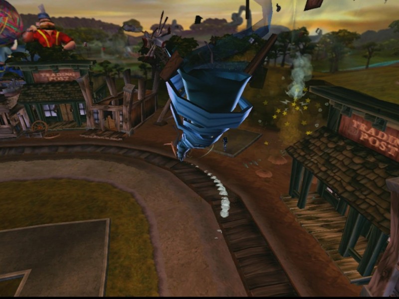 Editeur : Développeur : Genre : Action Multijoueur : Oui Jouable via Internet : Non Test par Nic0077/10 Détruisez tout sur votre passage avec Tornado Outbreak. Dans Tornado Outbreak, vous incarnez une authentique tornade et devez littéralement semer la pagaille sur Terre. Votre objectif : récupérez tous les éléments destructibles qui se trouvent sur votre route (bâtiments, voitures, ponts, etc). Le jeu a ainsi des airs de Katamary Damacy, et plus le temps passe, plus la tornade pourra absorber des objets toujours plus imposants. Mais attention. Vous ne serez pas seul, et les maléfiques Wind Warriors se dresseront contre vous pour vous empêcher de sauver le monde et pourront envoyer n'importe quel élément perturber votre élan. En tout, on retrouve onze monde différents, chacun remplit d'innombrables objets en tout genre. C'est très bordélique, mais c'est fait exprès. Techniquement parlant, Tornado Outbreak s'en sort assez bien. Si la 3D n'est pas toujours d'une grande finesse pour un jeu PS3, le rendu global est assez correct dans l'ensemble et dégage une vraie personnalité, et les environnements demeurent assez variés. L'univers proposé se montre assez enfantin, et la jouabilité est assez correct dans l'ensemble, même si on l'aurait aimé un peu plus réactive, dans la lignée d'un Katamari Damacy justement. Côté son, les musiques se montrent correctes, et la durée de vie demeure assez bonne. Notons que Tornado Outbreak n'est vendu que 30€. VERDICT-Tornado Outbreak est au final un bon petit titre. Même s'il n'a pas fait grand bruit au moment de sa sortie, ce jeu propose un gameplay maîtrisé, une réalisation très colorée et un petit prix. Les enfants apprécieront. |