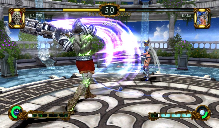 Développé par High Voltage Software, Tournament of Legends est un jeu dans la lignée de Soul Calibur, à savoir du combat 3D assez dynamique. Enfin ça c'est sur le papier. Bref, le titre nous entraîne à l'antiquité, avec des personnages tirés des différentes mythologies (gorgone, valkyrie, golem, gladiateur, etc). Premier bémol, seuls huit personnages différents sont sélectionnables. Ensuite, la durée de vie n'est pas non plus très élevée. Certes, le jeu est vendu à trente euros seulement, mais on ne retrouve qu'un mode Histoire peu scénarisé (où l'on pourra débloquer deux nouvelles recrues), un mode Versus et une option entraînement. C'est peu. Côté son, les musiques s'avèrent assez honnêtes pour leur part, mais les doublages américains sont remplis de clichés, pas toujours très drôles d'ailleurs.