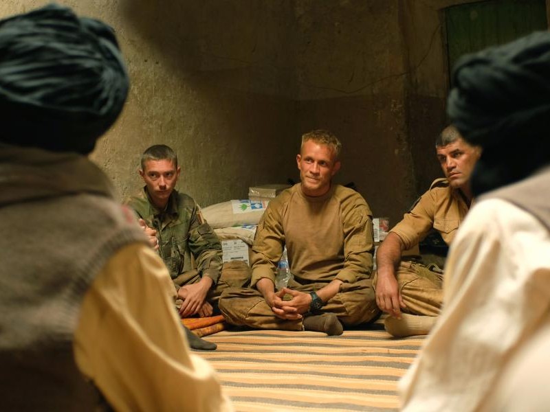 L'incursion du fantastique dans l'univers de la guerre n'est pas tout à fait nouveau. On se souvient en effet du maladroit mais sympathique « Djinns » d'Hugues et Sandra Martin en 2010, où un escadron était pris à parti par ces créatures surnaturelles. Les deux films d’ailleurs portent en eux la même tension ésotérique contrastant avec l’univers militaire très carré. « Djinns » se passait pendant la guerre d’Algérie et était une production à petit budget, ce qui n’est pas le cas de « Ni le ciel, ni la terre » dont on sent qu’il est doté de moyens financiers plus conséquent. Il est aussi plus contemporain (guerre d’Afghanistan), axé notamment sur les nouvelles technologies, appui stratégique dans les conflits récents. C’est d’ailleurs la-dessus que le film retient l’attention. L’utilisation des images infrarouges en vision nocturne contribuent largement à créer un climat d’angoisse et Cogitore ne s’en prive nullement. A part cela, rien ne se distingue vraiment d’une production du genre, tensions, rivalités, peurs… le tout aussi bien filmé qu’une publicité du service cinématographique des armées, musique de Bach en prime !